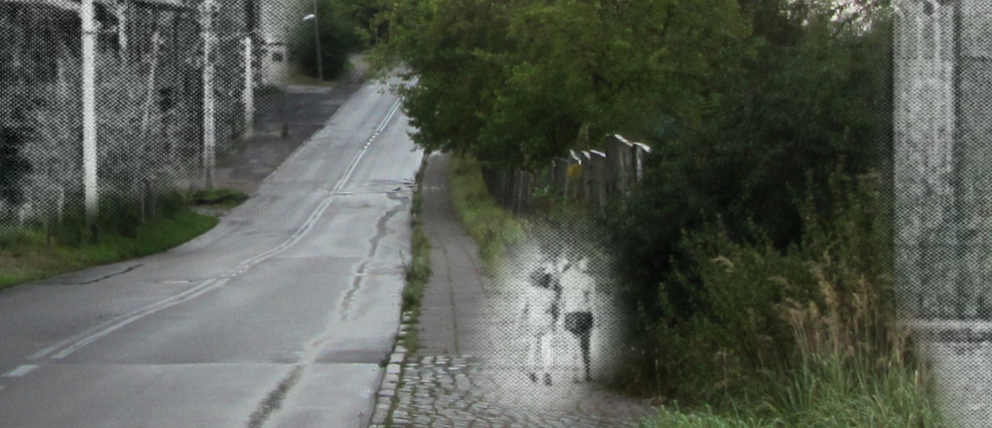 Zdjęcie pochodzi z 1959 r., czyli już z czasów powojennych. Zostało wykonane przy ul. Nad Odrą, w kierunku skrzyżowania z ul. Kościelną, nieopodal terenu należącego dziś do fabryki Fosfan. Przy najbliższej okazji, podczas wieczornego spaceru, zrobiłam swoją fotografię. Oto efekt kolażu przeszłości i teraźniejszości: