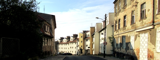 Dalszy odcinek ulicy to trochę wędrówka przez wąwóz i pustkowie.