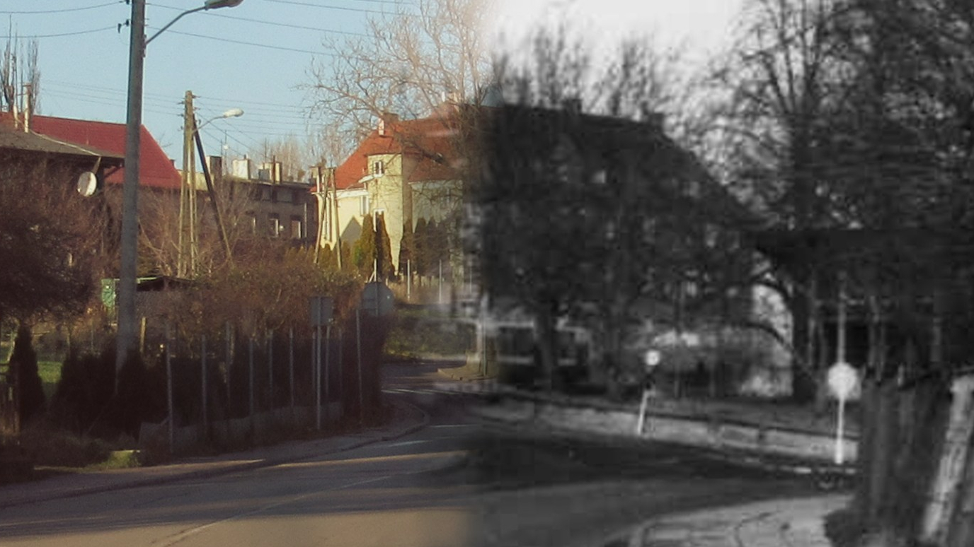 Ulica Nad Odrą jest na nim jeszcze brukowana, ale w tym odcinku wygląda podobnie do stanu obecnego. Oprócz asfaltu elementem „nowym” jest jedynie bariera drogowa energochłonna.