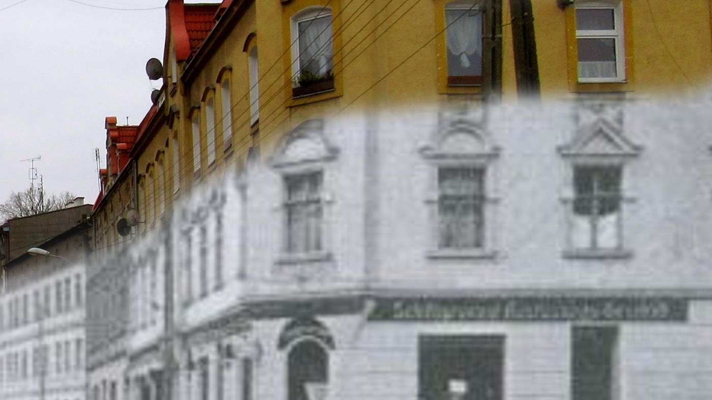 Odcinek ulicy Nad Odrą, który dzisiaj prezentuję, nie zmienił się bardzo. Pamiętam jak wiele lat temu uderzył mnie fakt, że apteka znajduje się (a właściwie znajdowała się) w tym samym miejscu co w czasach niemieckiego Stolzenhagen. Zdjęcie ze skrzyżowaniem, które posłużyło do dzisiejszego kolażu, jest jednym z najbardziej rozpowszechnionych. Pojawiło się nawet na przedwojennych pocztówkach.