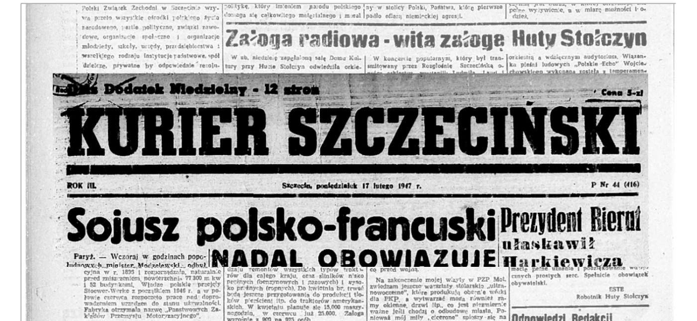 Życie codzienne początków polskiego Stołczyna przeplatało się z niecodziennymi wydarzeniami, co znajduje swoje odbicie w notkach prasowych. Dzisiaj przedstawiam kolejną, z Kuriera Szczecińskiego z 17 lutego 1947 r. Napisana przez „Robotnika Huty Stołczyn”, opowiada o wizycie radiowej orkiestry w hutniczym Domu Kultury. Wczujcie się w ten klimat: niecałe dwa lata od zakończenia wojny, Stołczyn, szesnastostopniowy mróz, repatrianci pracujący w Hucie Stołczyn (sic!) i orkiestra Polskiego Radia, która przyjechała do nich na ciężarówce, a sam koncert szedł w radio na żywo… Oto relacja: