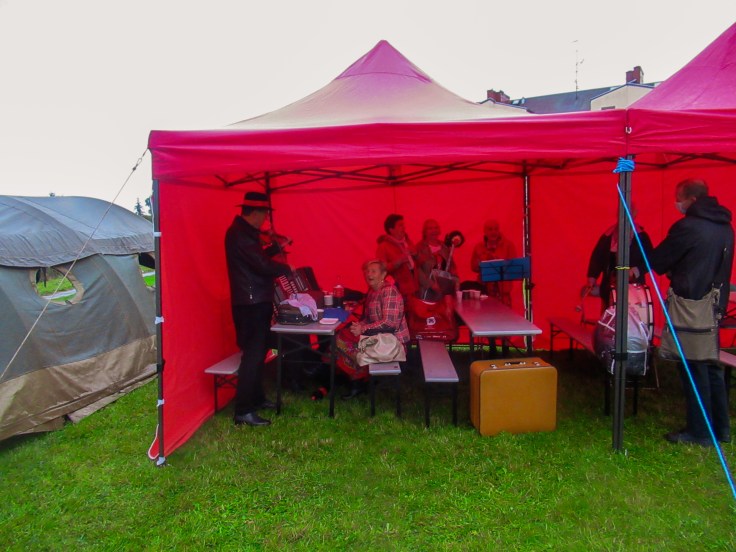 Pierwszą deszczową niepewną godzinę w szczególności umiliła fantastyczna grupa pań w strojach ludowych i z ludową muzyką – Gardnianki. Występowały one również później, ale na początku tchnęły w zgromadzoną grupę ducha zabawy.