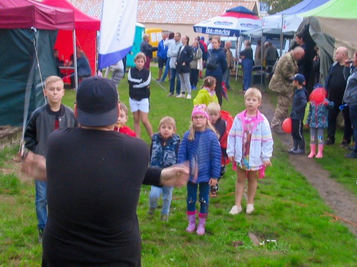 Wydarzenie było planowane i organizowane od wielu tygodni, i udało się, pomimo skąpych środków przygotować program imprezy bogaty w atrakcje. Nikt niestety nie mógł przypuszczać, że po tak pięknych wrześniowych dniach, akurat dzień przed festynem nawiedzą nas ulewne deszcze. Z powodu pogody kilka wydarzeń zostało odwołanych: nie było szczudlarza, robotyki ani zapowiadanego meczu siatkówki Rada Osiedla vs Młodzi. Mam nadzieję, że ten ostatni uda się rozegrać jeszcze w bardziej sprzyjających okolicznościach, gdyż medale czekają…