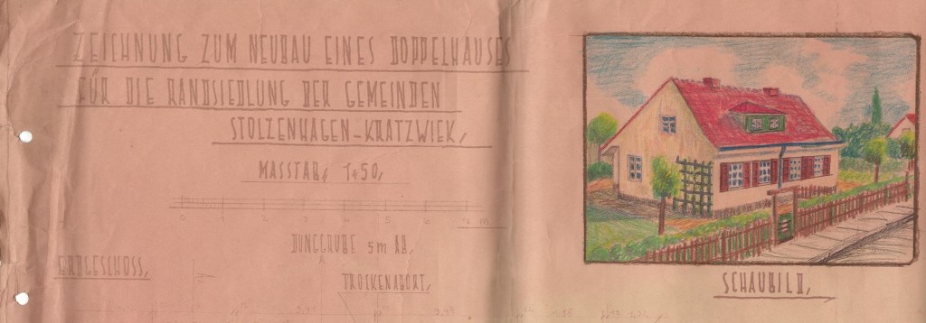 Jedynym wyposażeniem był piec węglowy i piece kaflowe. Światło elektryczne było dostępne dopiero w latach 1938/39. Parter składał się z kuchni i salonu, na piętrze były dwa pokoje. Powierzchnia użytkowa była więc niewielka i osiągała około 60/70 metrów kwadratowych. Do każdego osadnika należała też stajnia. Większość mieszkańców hodowała jednak tylko drobny inwentarz. Domowi towarzyszył też ogród o powierzchni około 1000 metrów kwadratowych. Większość osadników tego osiedla to byli pracownicy przemysłu w dolnej części Stołczyna, a więc mieli kawałek drogi do pracy. Podobnie dzieci do szkoły szły ok trzy kwadranse. Po spłaceniu pożyczek domy przeszły na własność osadników. Wtedy to ścieżki zostały w większości wybrukowane, działki osiedla ogrodzono, a domy w większości wyposażono w podwójne okna i okiennice. Właściciele dobudowali werandy, a stajnie często przekształcano w pomieszczenia mieszkalne. W takim właśnie stanie mieszkańcy musieli opuścić swoje domy po zakończeniu II Wojny Światowej.