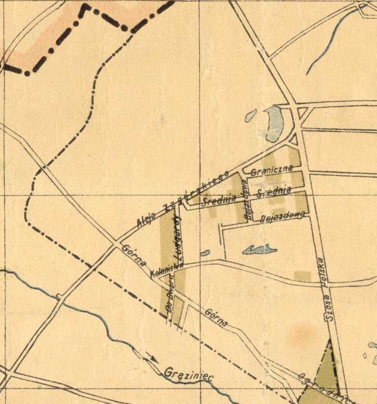 Nieco wcześniej, bo w końcu lat 20. XX wieku zaczęto zabudowywać tereny dzisiejszych ulic Ludgardy, Kolonistów i Do Dworu. Randsiedlung, czyli Skrajne Osiedle, zostało wybudowane przez lokalną firmę budowlaną Lucht und Schlömann. Budowa ta była ściśle związana z programem przeciwdziałania skutkom wielkiego kryzysu gospodarczego z końca lat 20. XX wieku. Zainteresowani budową i zakupem domu nowi osadnicy otrzymali pożyczki, które spłacali do 1937 r. Wnosili też wkład własny w budowę domu w postaci własnej pracy. W efekcie powstało osiedle złożone z 44 budynków, w tym 16 w zabudowie bliźniaczej.