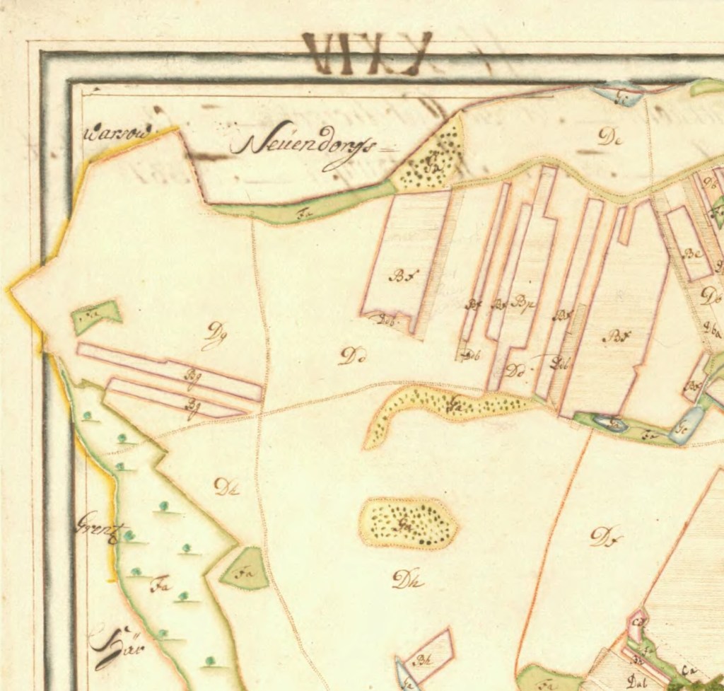 Pola i łąki Stołczyna, w rejonie dzisiejszego Bukowa, na fragmencie katastru szwedzkiego.
