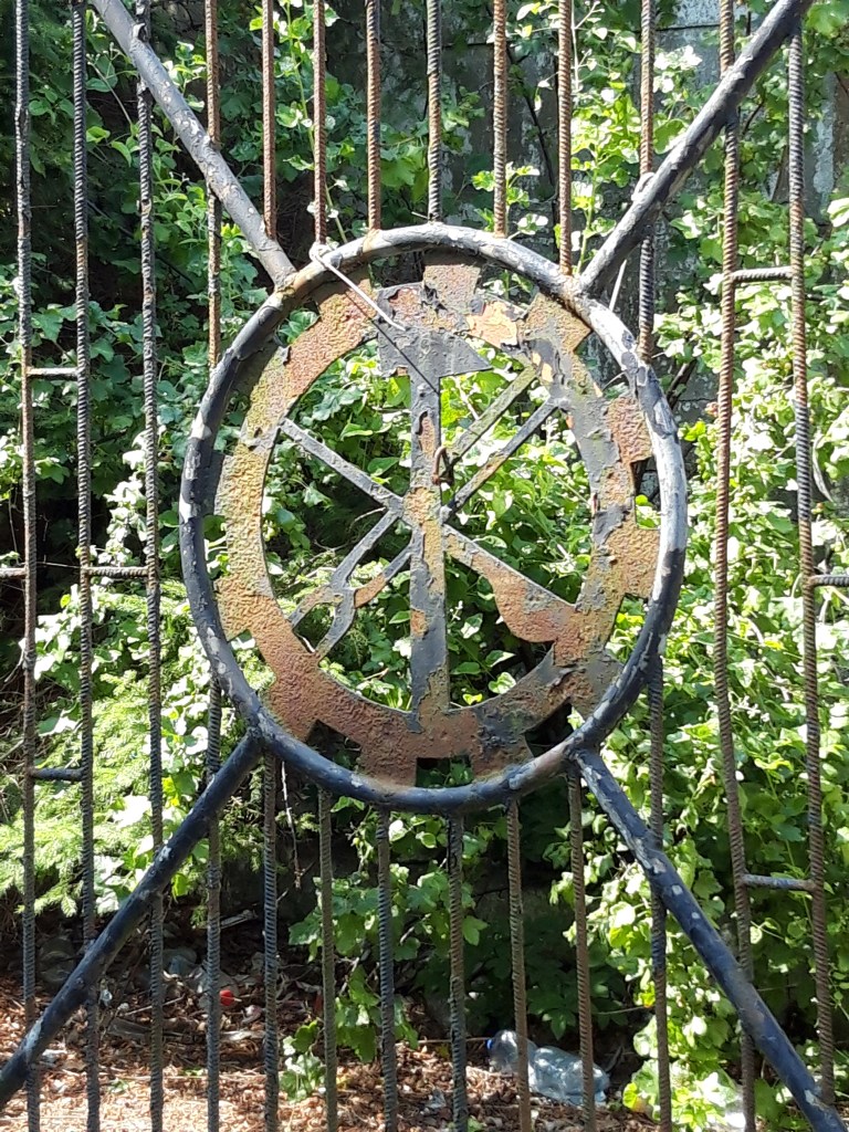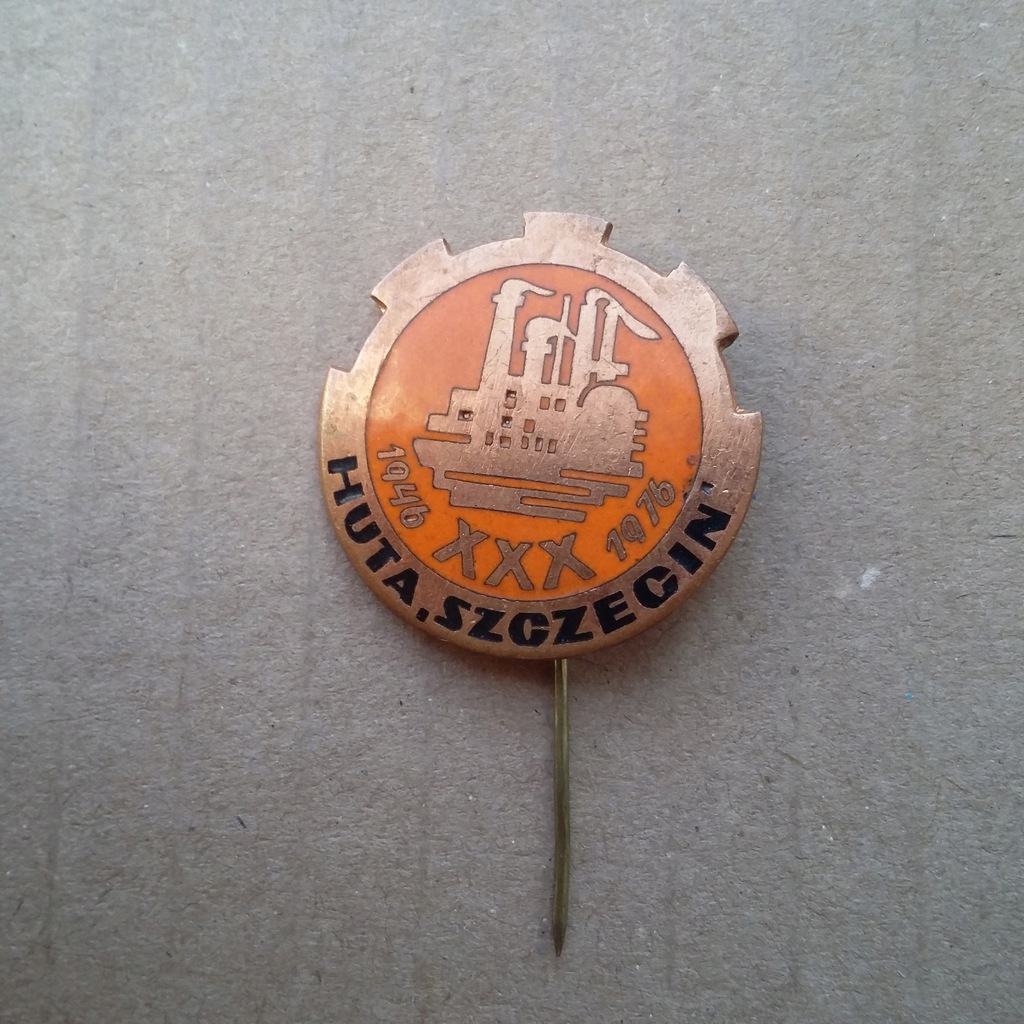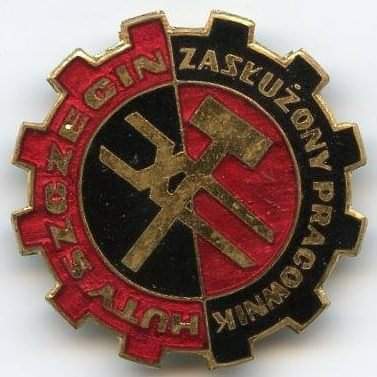 Ostatecznie zrezygnowano z części nazwy „SA” i w zamian wstawiona została data budowy huty. Jest to rozwiązanie połowiczne, ale już znacznie lepsze niż pierwotny pomysł. Sama zgłaszałam tutaj uwagę zarówno do RO, jak i autora muralu, że wybrane logo to jednak dość niefortunny symbol, związany z życiem huty raptem nieco ponad 10 lat, w formie podzielonej na spółki. Z okresu kiedy w hucie działo się coraz gorzej, aż do jej likwidacji. A w końcu mamy logotyp i emblemat ze znacznie dłuższą historią, do tego bardzo dobrze kojarzony z dokumentów i pamiątek hutniczych, lub choćby bramy wejściowej do dawnego Domu Kultury. Do tego uniwersalnie związany z hutnictwem. Są to skrzyżowane narzędzia (młotek i szczypce) wpisane w koło zębate. Jest to symbolika związana z naszą hutą od początku, pojawia się zarówno w czasach niemieckich, jak i potem długo w polskiej historii funkcjonowania firmy. Różne mamy jedynie jej realizacje, raz jest to emblemat jednobarwny, innym razem, dwukolorowy – czerwono-czarny: