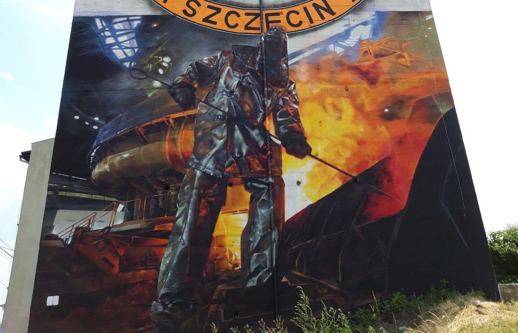 Druga moja uwaga natomiast dotyczy postaci hutnika przy pracy. Tutaj nie mam pewności, ale może ktoś mnie wyprowadzi z błędu – w naszej hucie nie było takich „pojemników” przy jakich stoi hutnik z muralu. Czy były i moi bliscy pracujący w hucie się mylą? Jeżeli były to ok, ale jeśli nie – czy nie można było skorzystać z jakiejś fotografii naszych hutników przy pracy, by jednak oddać realia stołczyńskiego zakładu?