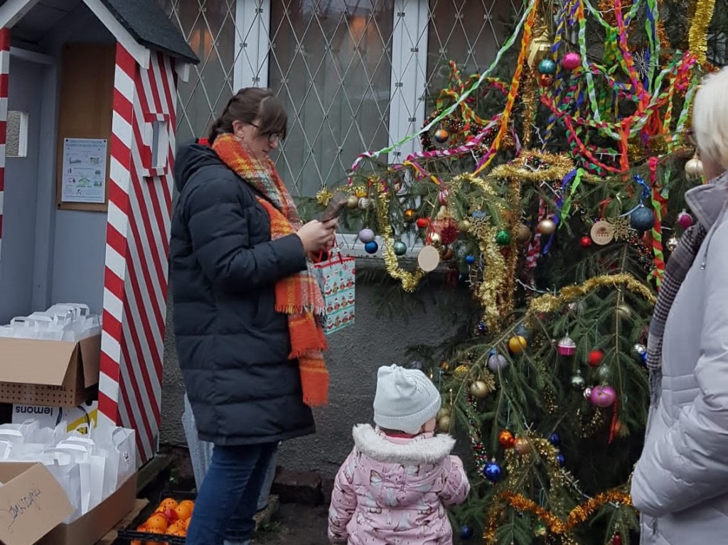 Głównym celem spotkania było wspólne ubranie choinki. Każdy mógł przynieść swoją ozdobę i zawiesić ją na drzewku. Pojawił się też Mikołaj i jego pomocnicy, którzy dla najmłodszych mieli prezenty. Mi osobiście ten akcent przypomniał spotkania z Mikołajem organizowane onegdaj w Domu Kultury. Sama zdążyłam jeszcze być na dwóch takich imprezach Mikołajkowych. Cieszę się, że teraz moje dziecko mogło w czymś takim uczestniczyć, i to na „naszym podwórku”.