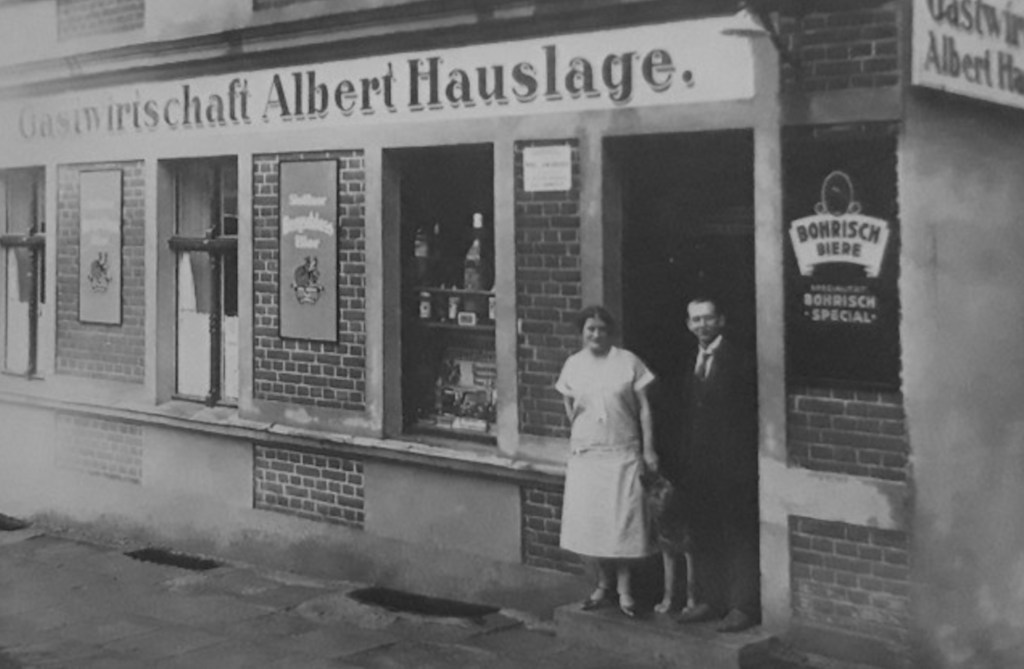 O restauracjach, w tym o Gastwirtschaft Albert Hauslage, pisałam już we wcześniejszym wpisie. Przypomnę, że była to restauracja działająca długo, bo pojawiła się już w 1915, i działała do ok. 1943 r. W początkach widnieje jako Hauslage Emilie. Albert Hauslage pojawia się później, w 1933 r., zarówno jako prowadzący restaurację, jak i właściciel całej kamienicy.