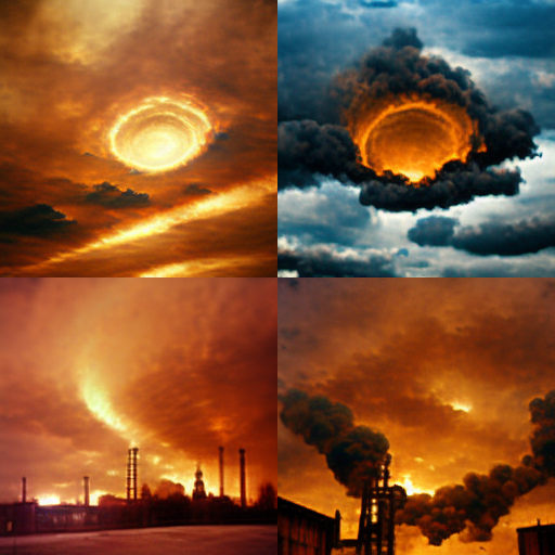 Mnie tam do takich dostępnych na wyciągnięcie ręki ciekawostek nie trzeba długo namawiać. Znalazłam przywoity tutorial, co i jak zrobić i postanowiłam na warsztat wziąć opis huty pozostawiony przez Tadeusza Różewicza. Wiemy, że pisarz był na Stołczynie i oglądał niebo nad Stołczynem podczas spustu surówki w hucie. Mamy opis jego wrażeń, ale nie mamy absolutnie żadnego wizualnego dowodu. Przetłumaczyłam zatem opis poety na język angielski – i tu drobna uwaga, Midjourney zabrania używania niektórych słów, jak np. „seduced”, czyli uwiedziony, który kilka razy pojawia się w opisie Różewicza. Ostatecznie po kilku zmianach opis został zaakceptowany i po 60 sekundach dostałam 4 obrazy. Zanim na nie spojrzycie, polecam Wam zapoznać się z opisem Różewicza. Tylko wówczas będziecie mogli ocenić jakość pracy AI – linkuję jeszcze raz 😀