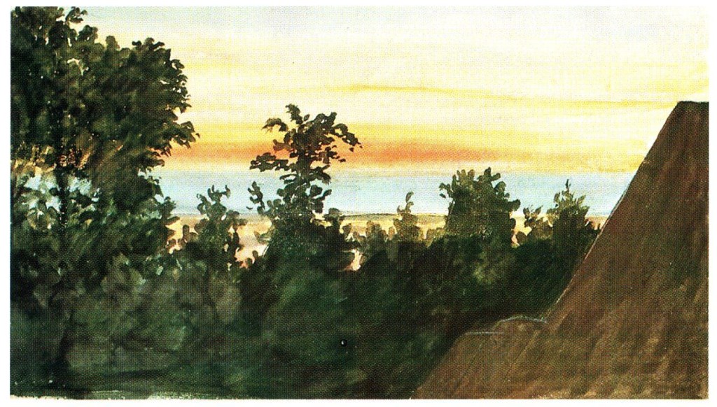Nie ma chyba lepszej wypowiedzi malarza o Stołczynie, jak jego prace. A te, które znam i do których udało mi się dotrzeć, pokazują okolicę pastorówki, widoki z tego miejsca oraz… hutę. Hans mieszkał w budynku dzisiejszej plebanii przy ul. Kościelnej, i to stamtąd jest widok na poniższym obrazie.
