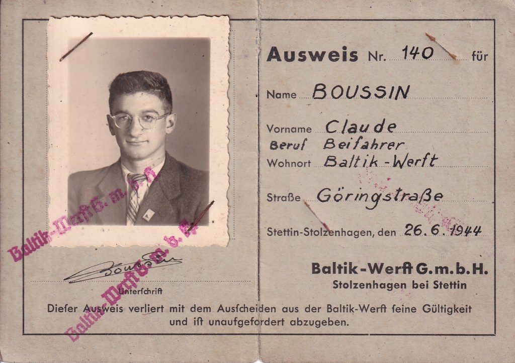 Ta historia to gotowy scenariusz na film. Z uwagi na osobistą tragedię głównego bohatera, należy się mu raczej poważna forma. Bohaterem jest Francuz, Claude Boussin, który mając nieco ponad 20 lat, trafił jako pracownik przymusowy do pracy w stołczyńskiej stoczni Baltik-Werft.