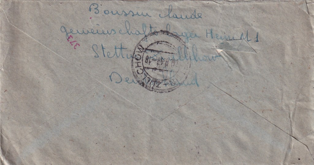 Claude Boussin swoją podróż rozpoczął na stacji Angers 16 marca 1943 r. 18 marca przybył do Szczecina. Miejscem jego zakwaterowania był Gemeinschaftslager – Züllchow na Adolf Hitlerstrasse 36, a zatem obóz w Żelechowej, na obecnej Dębogórskiej 36. Z książki adresowej z 1942 r. dowiadujemy się, że pod tym adresem działała Stettiner Portland-Cementfabrik.