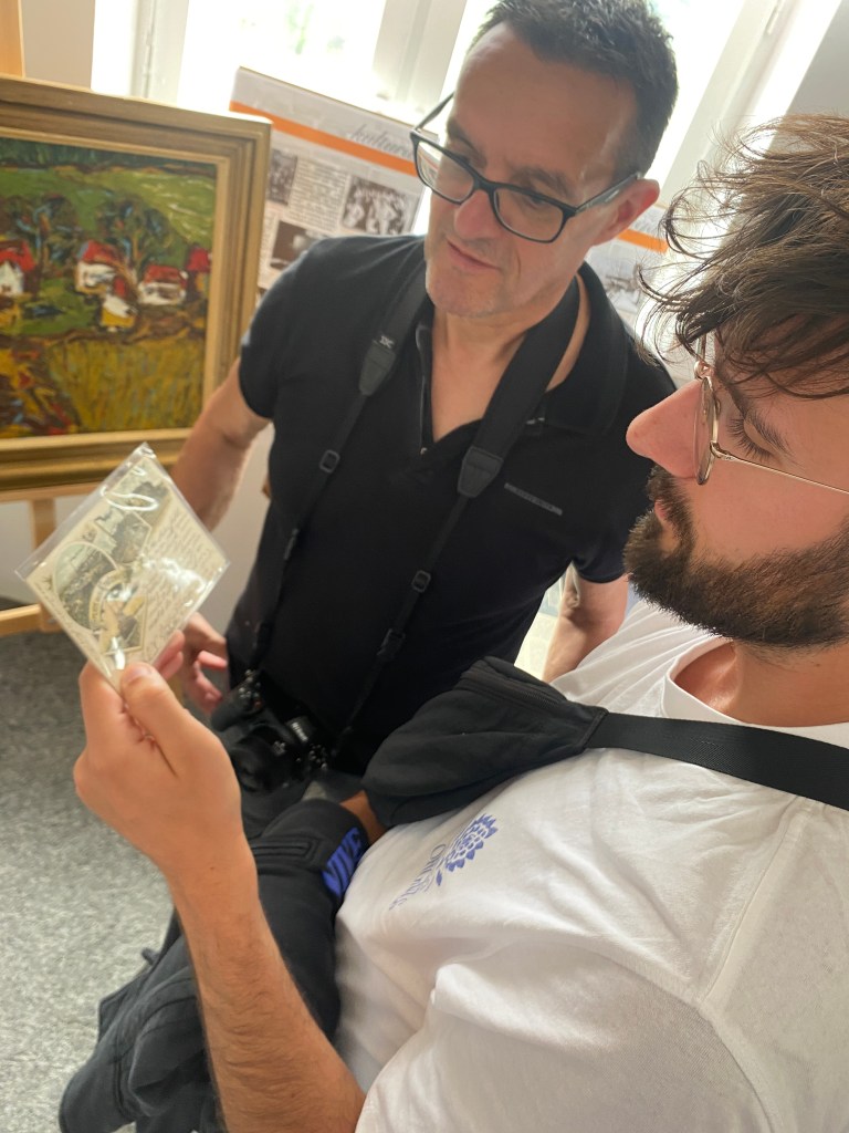 Do spotkania doszło w piątek, 9 sierpnia 2024 r. Odwiedziliśmy wszystkie miejsca, które w wojennej historii Claude’a w Szczecinie były najistotniejsze: lokalizację obozu, w którym mieszkał na Żelechowej, nabrzeża portowe, skąd prawdopodobnie uciekał z towarzyszem, tereny dawnej stoczni Baltik-Werft. Na koniec zabrałam rodzinę Boussin do Izby Pamięci Stołczyna, w której mamy jedną kartkę pocztową napisaną w 1900 r. po francusku, co było ciekawym akcentem spotkania. Goście podarowali Izbie jedną kartką żywnościową z czasów obozowego życia ich przodka. Po odpoczynku i obiedzie w Restauracji Jachtowa, udaliśmy się z powrotem do centrum na krótkie zwiedzanie i autobus powrotny.