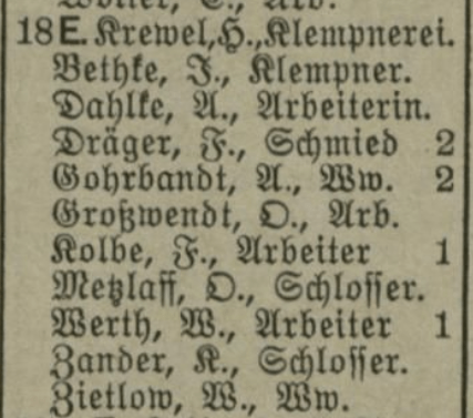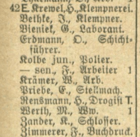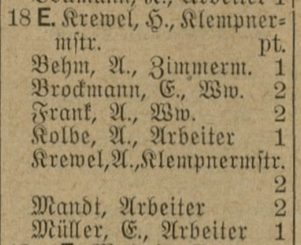 Z przedwojennych ksiąg adresowych wynika, że przed zmianą numeracji budynków, kamienica ta miała nr 18. Jej właścicielem przez cały okres, jaki możemy w tych księgach prześledzić był niejaki Krewel, właściciela warsztatu blacharskiego, który mieścił się na parterze kamienicy. W 1909 r. widzimy, że sam mieszkał na drugim piętrze kamienicy, potem znika z niej jako mieszkaniec, pozostając właścicielem kamienicy i zakładu blacharskiego.